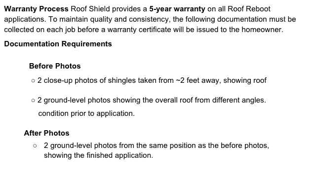 ROOF SHIELD WARRANTY SUBMISSION